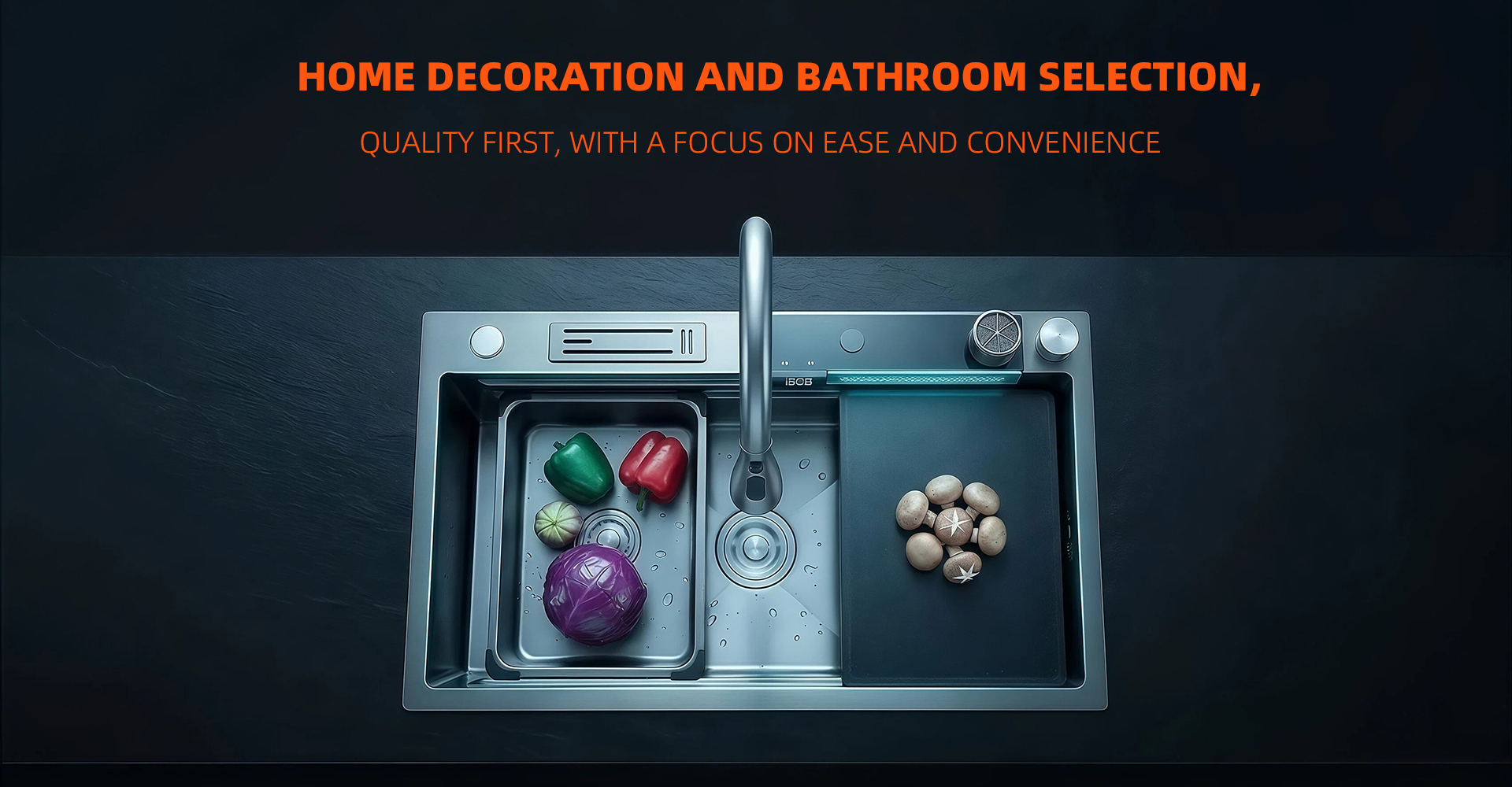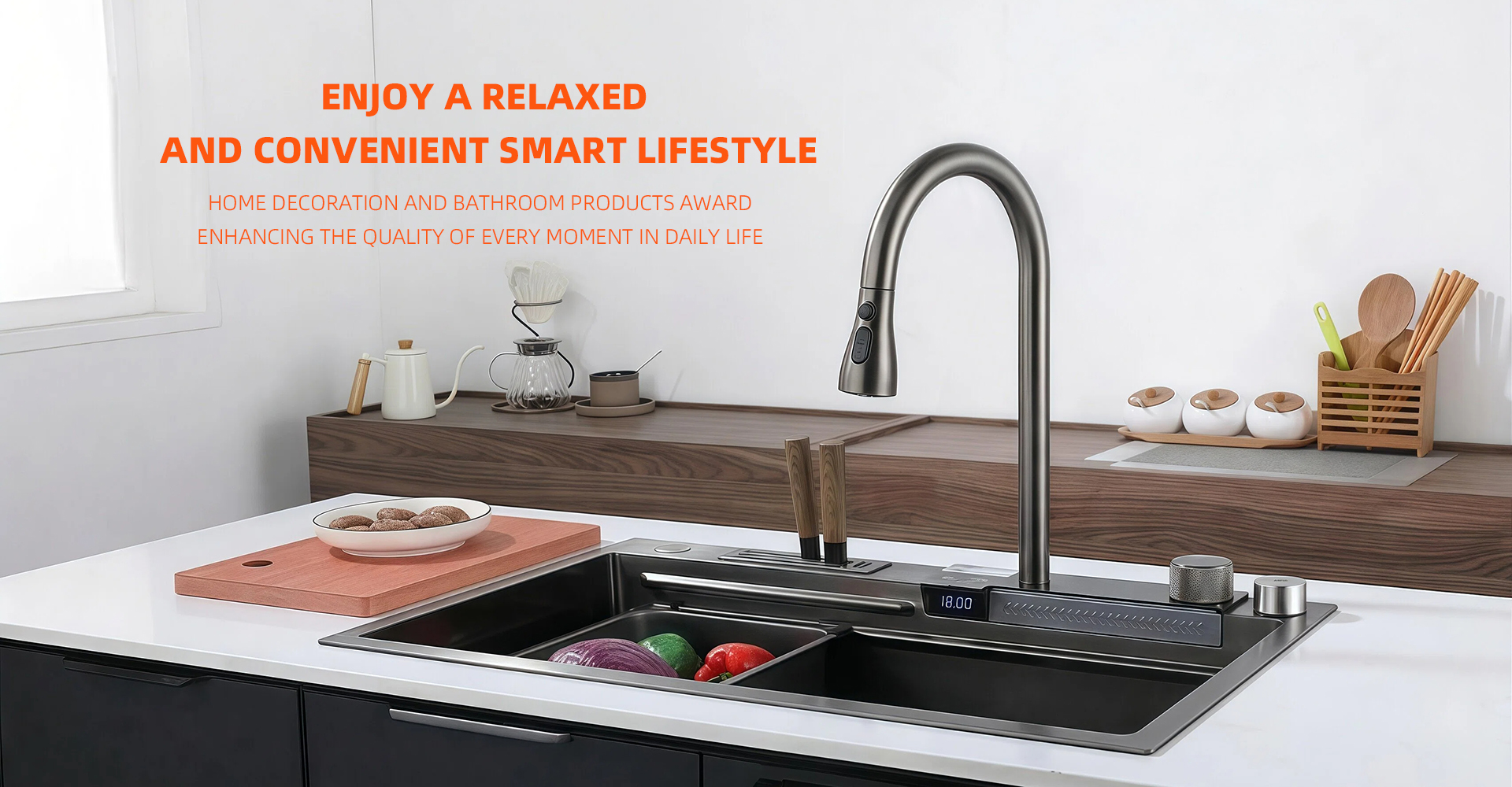 Emed Digital Display Feiyu Waterfall Sink Single-slot Stainless Steel 304 Kiten Household Dishwasher Sink Vegetable Basin