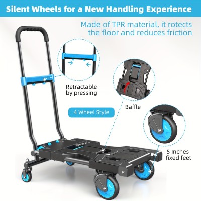 Heavy-Duty Folding hand truck - 330LB Capacity, Heavy-Duty Folding dolly with Retractable Handle, Collapsible Moving Cart with All-Terrain Wheels for Home, Warehouse